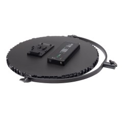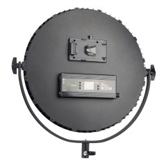 Zasilanie lampy może odbywać się poprzez akumulatory V-Mount (brak w zestawie) lub dołączony zasilacz sieciowy. Szeroki wybór akumulatorów